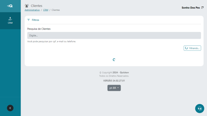 6. Para pesquisa colocaremos o cpf do cliente no campo Pesquisa de Clientes e depois clicamos em Filtrar.
