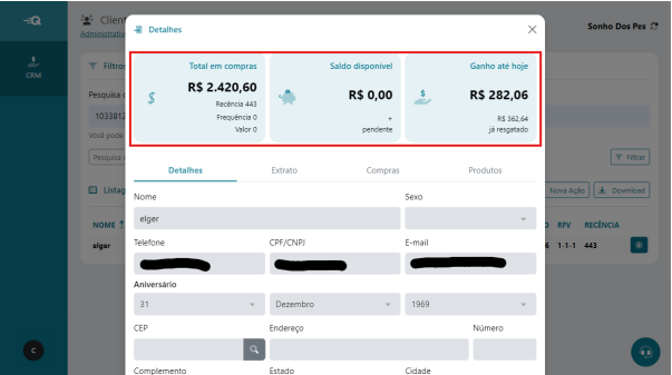 5. Essa é a tela de consulta de Clientes no qual podemos acessar todo seu histórico de Venda.