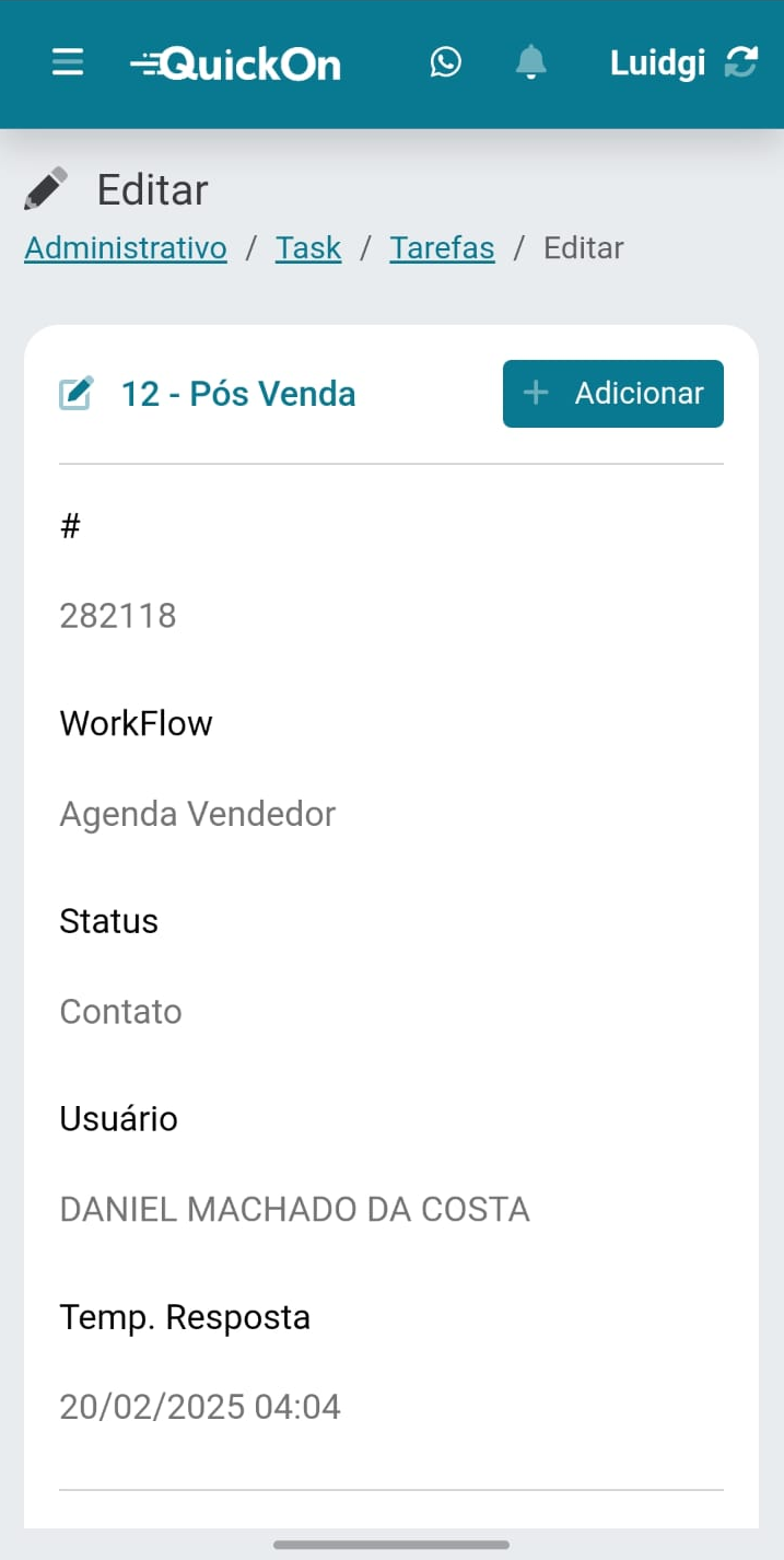 - Aqui, você verá a lista de todas as tarefas atribuídas ao vendedor logado, incluindo detalhes sobre cada uma delas.